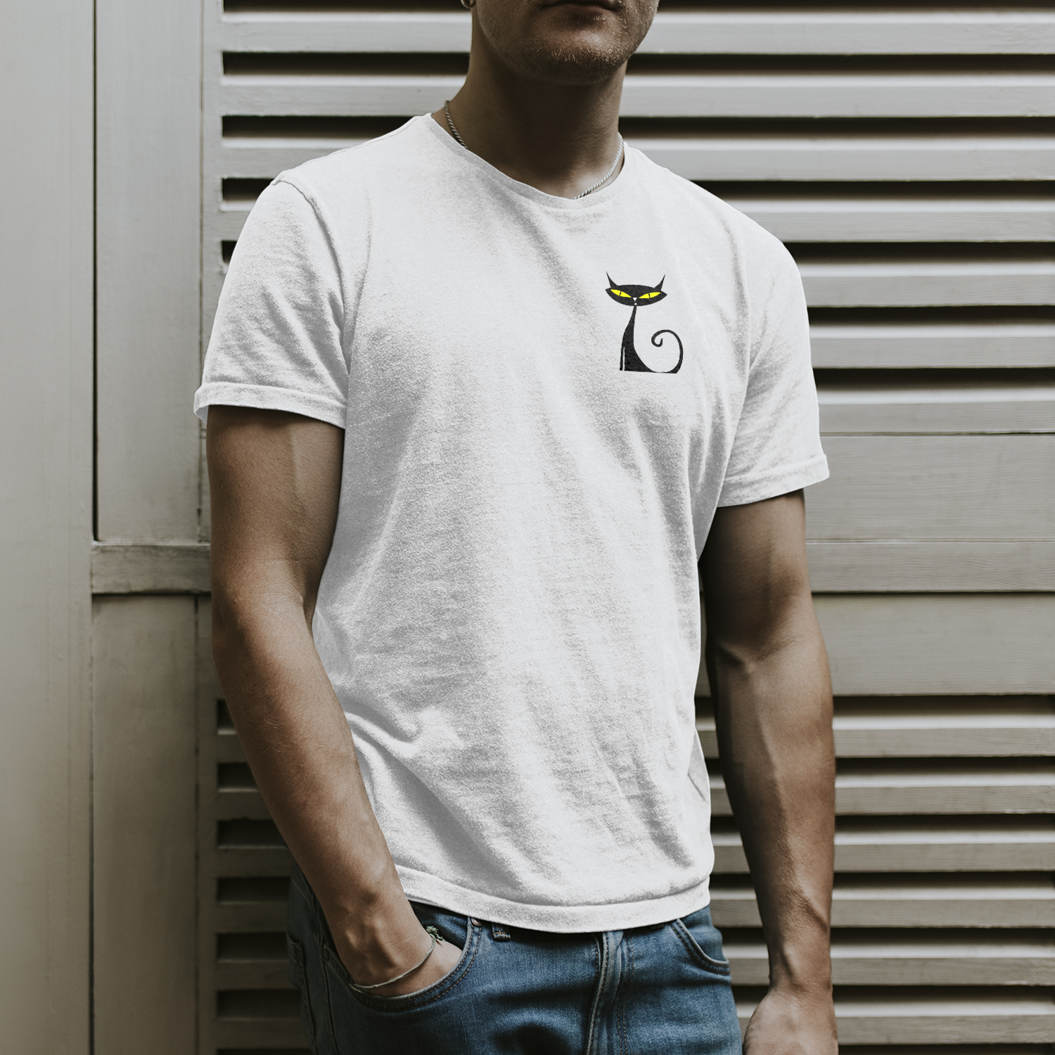 Environmentally and animal friendly ECO T-shirt with a cute stylised cat image
